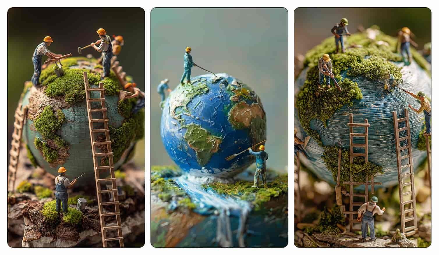 Midjourney Prompt: miniature people carefully restoring a globe, tiny builders and restorers repairing the world with ladders, scaffolding, brushes and tools, cracks being mended, greenery growing back, collaboration and care, hopeful atmosphere, warm soft light, symbolic social change, macro photography, tilt-shift effect, ultra detailed, cinematic, inspirational --ar 2:3 --rawWhenever you’re ready to take the next step