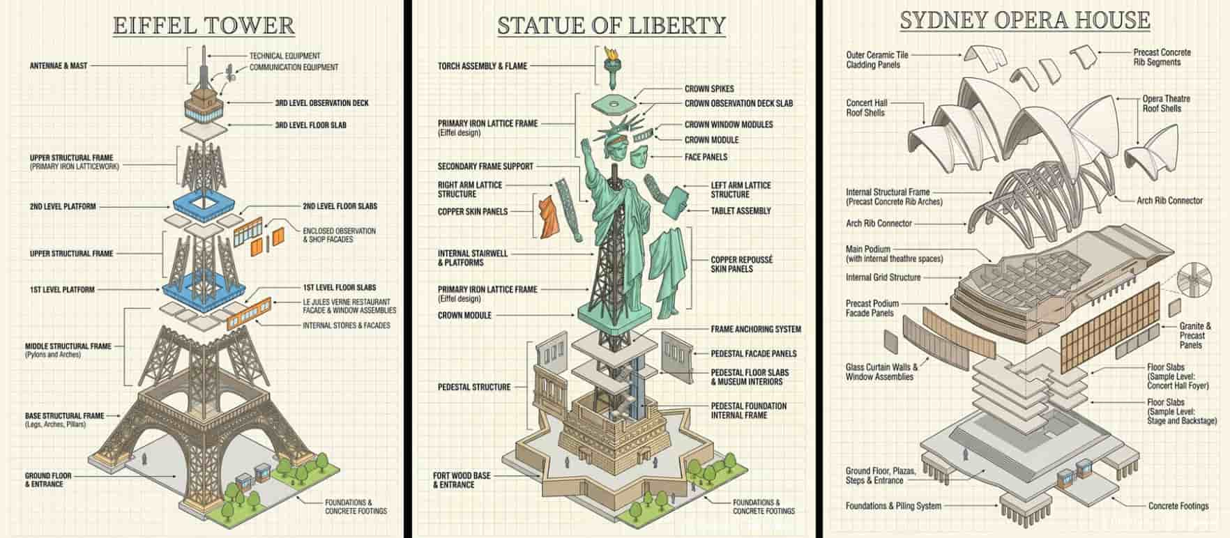 NanoBanana Prompt: “Generate an exploded axonometric diagram of [LANDMARK]. The diagram should separate the building into its key architectural and structural components, including the roof modules, facade panels, window assemblies, floor slabs, structural frame, and ground floor. Add labels to identify each component.”Whenever you’re ready to take the next step