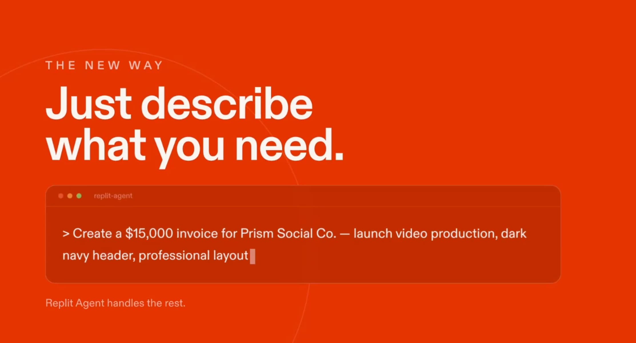 Sample Prompt: Create a $15,000 invoice for Prism Social Co. - launch video production, dark navy header, professional layout