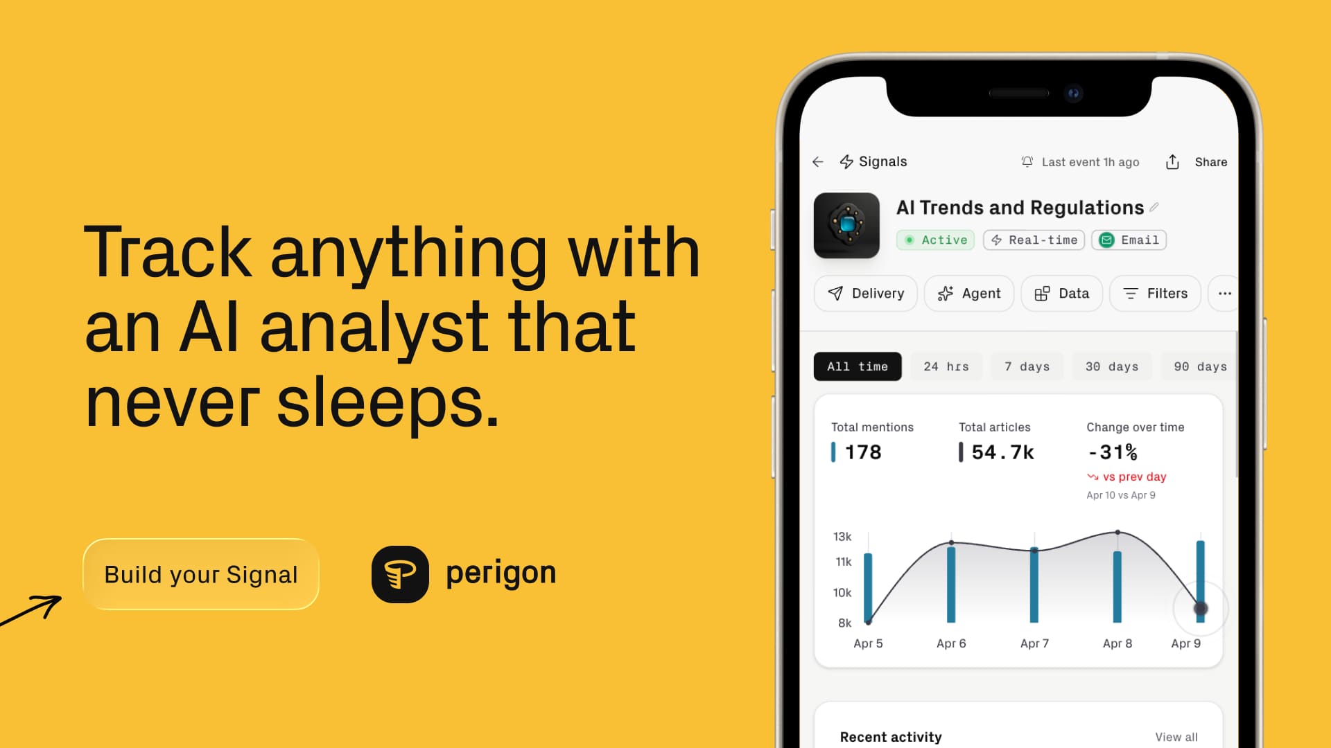 Perigon Signals monitors 200k+ sources 24/7, delivering a clean, custom briefing to your inbox or Slack. Competitors, trends, regulations—nothing slips through.