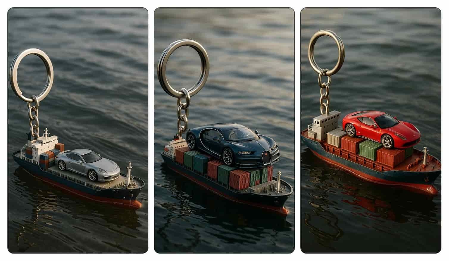 ChatGPT Prompt: Logistic concept, A Cargo ship keychain carrying a luxury [car name] Car, hyper realistic, in a water surfaceWhenever you’re ready to take the next step
