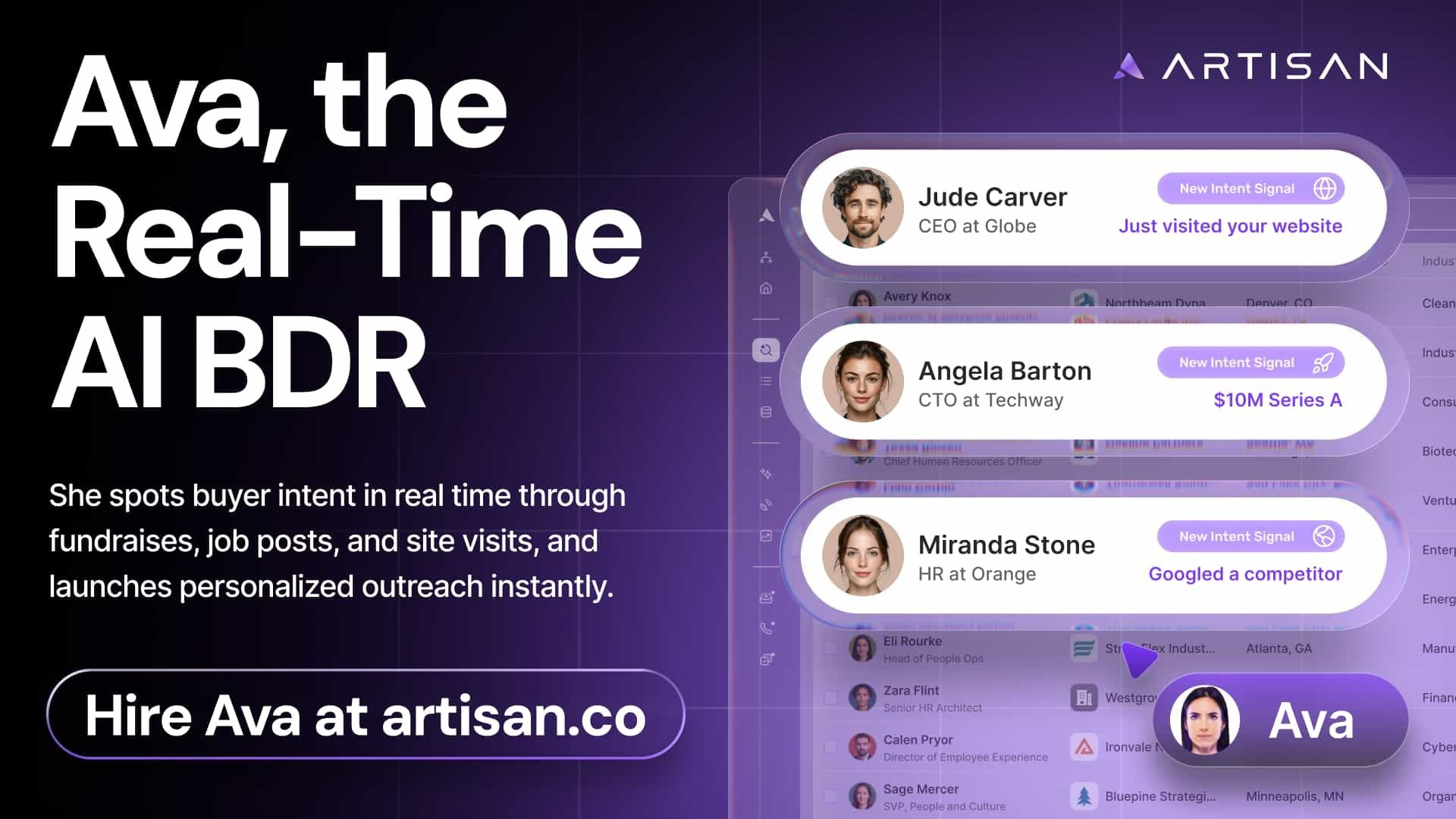 Meet Ava, your AI BDR that monitors your leads 24/7 and takes action the moment they’re ready to buy. Ava tracks high-intent signals like fundraising announcements, job postings, and website visits. Then, she enrolls leads into personalized, multi-channel sequences, so you strike while the iron’s hot.