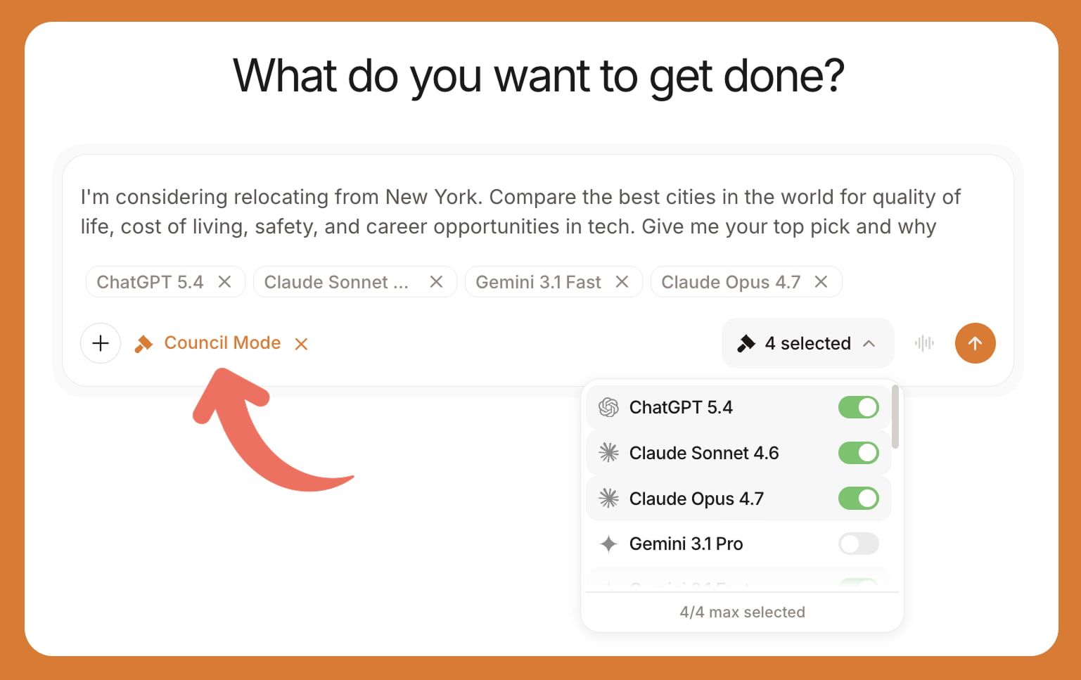 Select "Council Mode" in the new chat