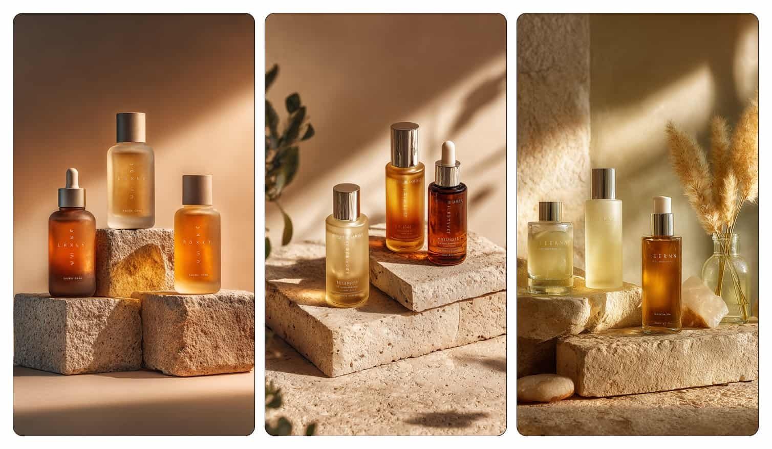 Midjourney Prompt: luxury clinical skincare product photography, apothecary style glass bottles, frosted and amber options, minimal labeling with serif and clean sans-serif typography, placed on warm stone platform, soft natural daylight, clean warm cream background, elegant scientific aesthetic, subtle hydration atmosphere, premium embossed details, clinical luxury brand identity --ar 3:4 --style rawPro Tip: You can use the same prompt without parameters in ChatGPT and Gemini to get similar results.