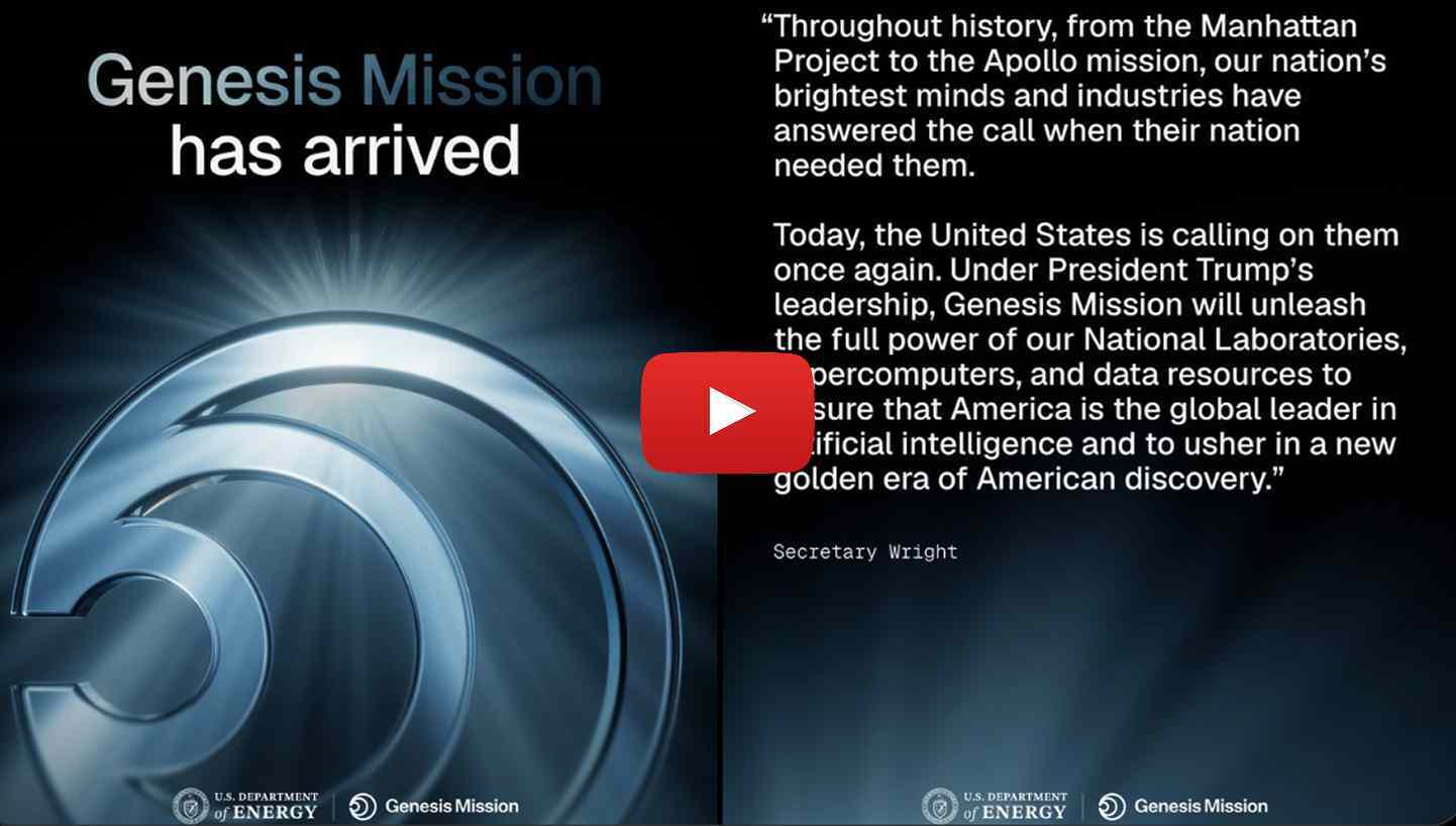 1. The White House announces a “Manhattan Project for AI”: Outlined by an executive order, the Genesis Project is a national effort to accelerate AI-driven innovation. The project — run by the Department of Energy — aims to build an integrated AI model trained on federal data, while also creating jobs and reducing energy costs. It’s being compared to the Manhattan Project and the Apollo program. Watch the release video here.