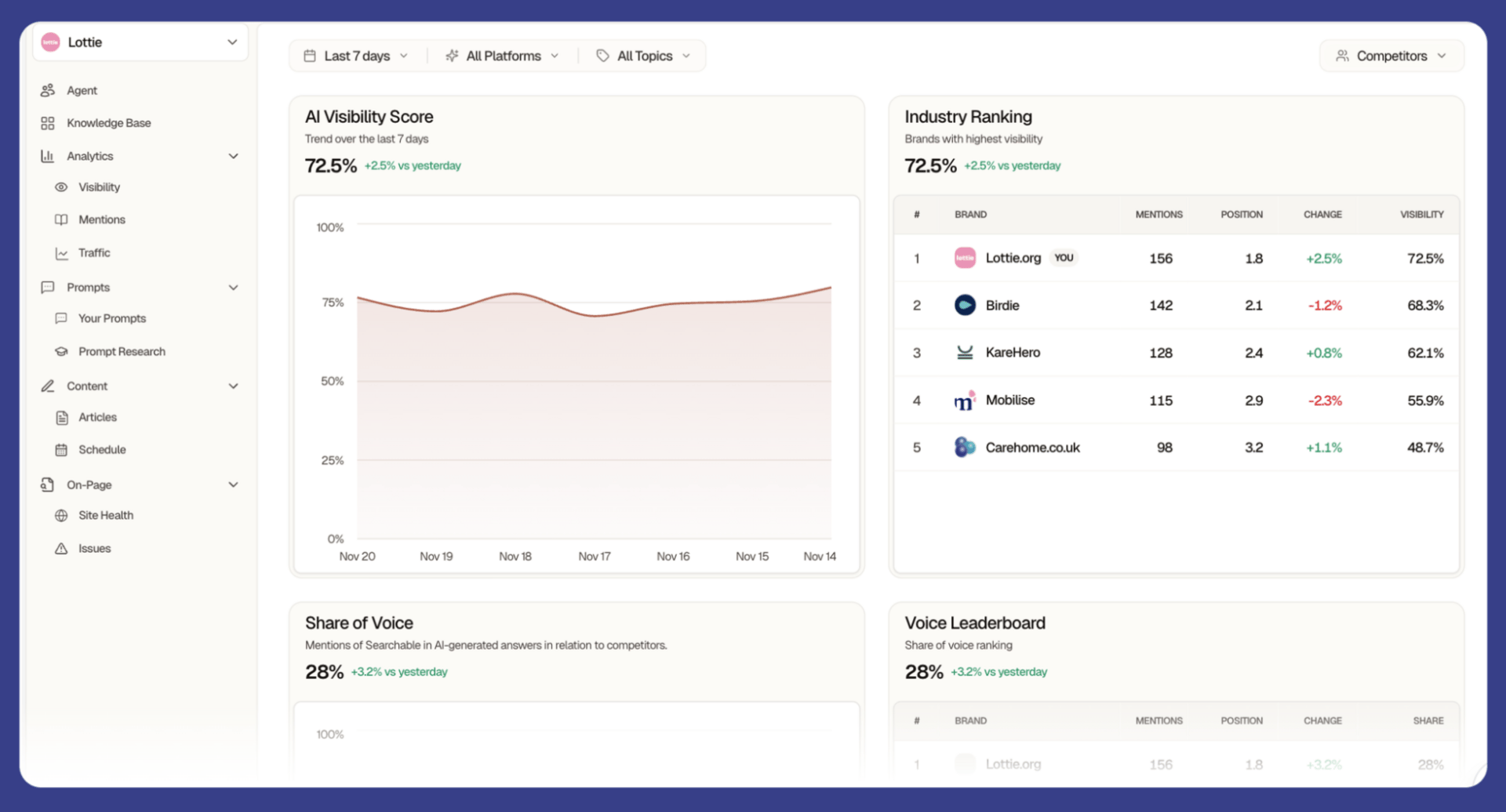 Sample Prompt: Analyze my top 3 competitors (XYZ) and identify their customer acquisition strategies across search, content, and brand positioning. Show me the gaps in their approach and recommend specific tactics [my brand] can use to capture more clicks and revenue from [XYZ customer type] in the UK and US markets.